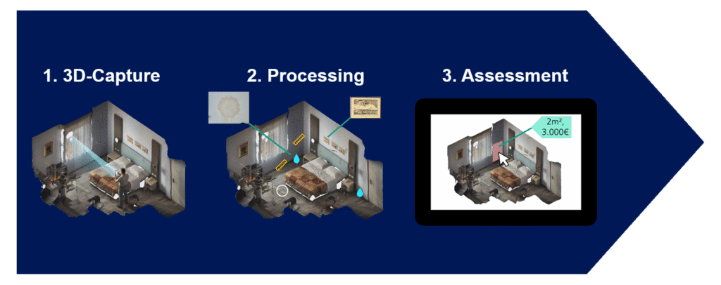 The Challenge: Processing property damage claims is often slow, complex, and lacks transparency. On-site visits and manual documentation lead to delays and high administrative costs.